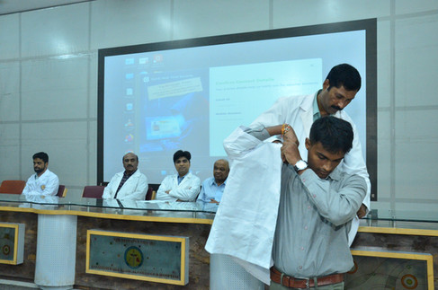 The ceremony was held in the esteemed presence of Dr. Prashanth G., Dean of Basaveshwara Medical College, and Dr. Nagendra Gowda M.R., Deputy Medical Superintendent, along with a distinguished panel of faculty members. The attendees included Dr. Mahesh G.M., Dr. Patil Shrish, Dr. Basavaraj V. Savadi, Dr. Suresh Y. Bondade, Dr. Virupakshappa H.M., Dr. Basavanathappa S.P., Dr. Sharath B.V., Dr. Divya D., Dr. Asfia Afreen, Dr. Shreekrishna H.K., Dr. Lavanya N., Dr. Nirmala J. Deshpande, Dr. Shubha D.S., Dr. Deepak R.S., Dr. Dhamaraj B., Dr. Ramu R., Dr. Bhagya V., Dr. Manjunath Rao S.V., Dr. Yogendra M., Dr. Sangeetha V., and Dr. Ajay Sharma U.